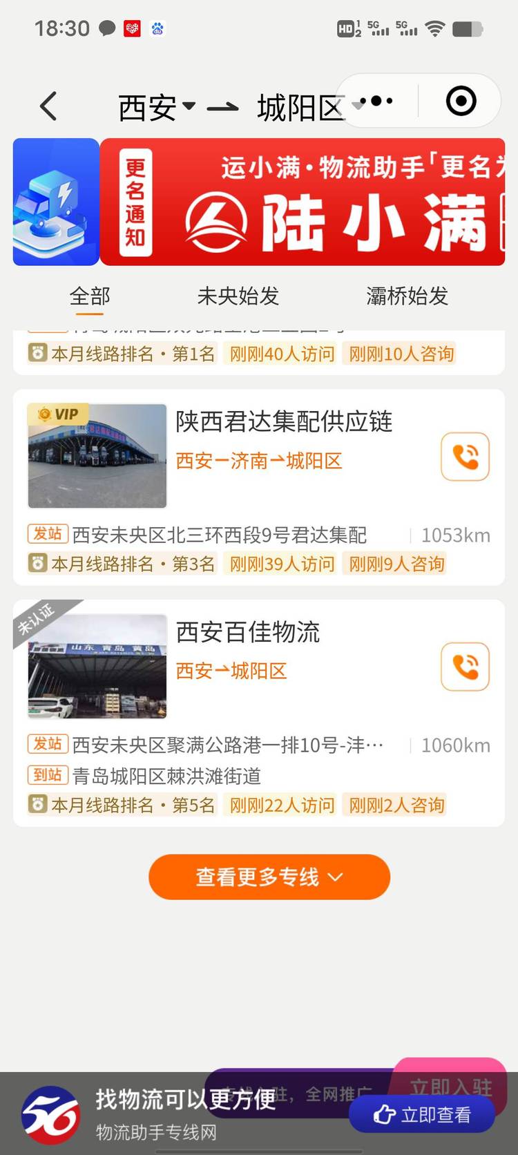 这家物流不是西安到青岛直达的,是从临沂周转到青岛发80个塑料桶,说好40元货拉拉到那里给要100元。